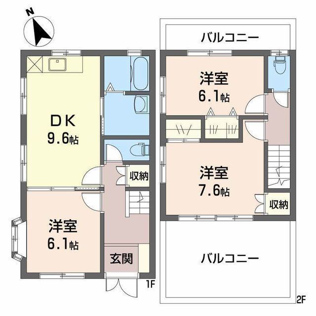 DK 9.6帖 、洋 7.6帖 、洋 6.1帖 、洋 6.1帖