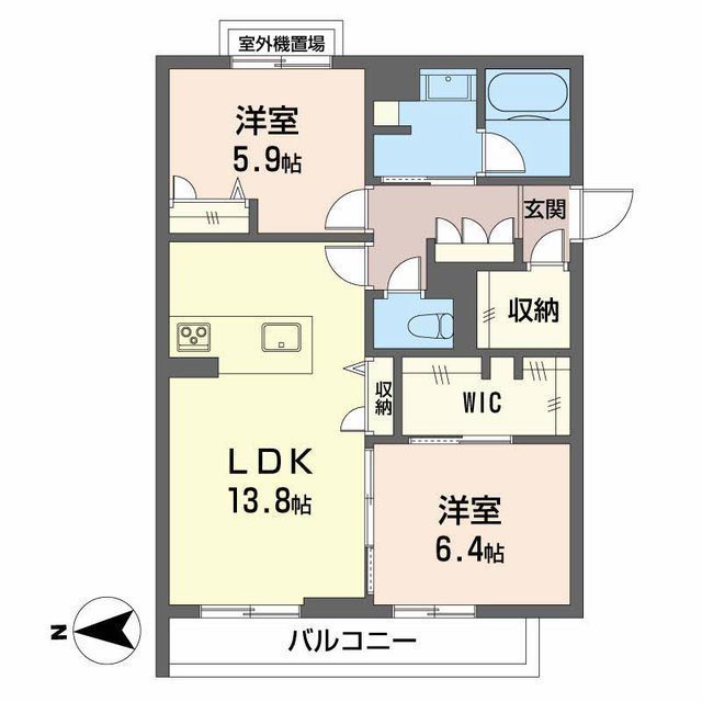 LDK 13.8帖 、洋 6.4帖 、洋 5.9帖