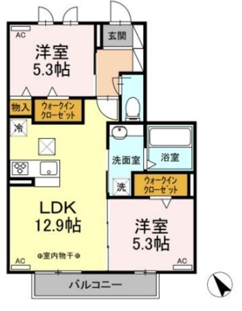 LDK 12.9帖 、洋 5.3帖 、洋 5.3帖